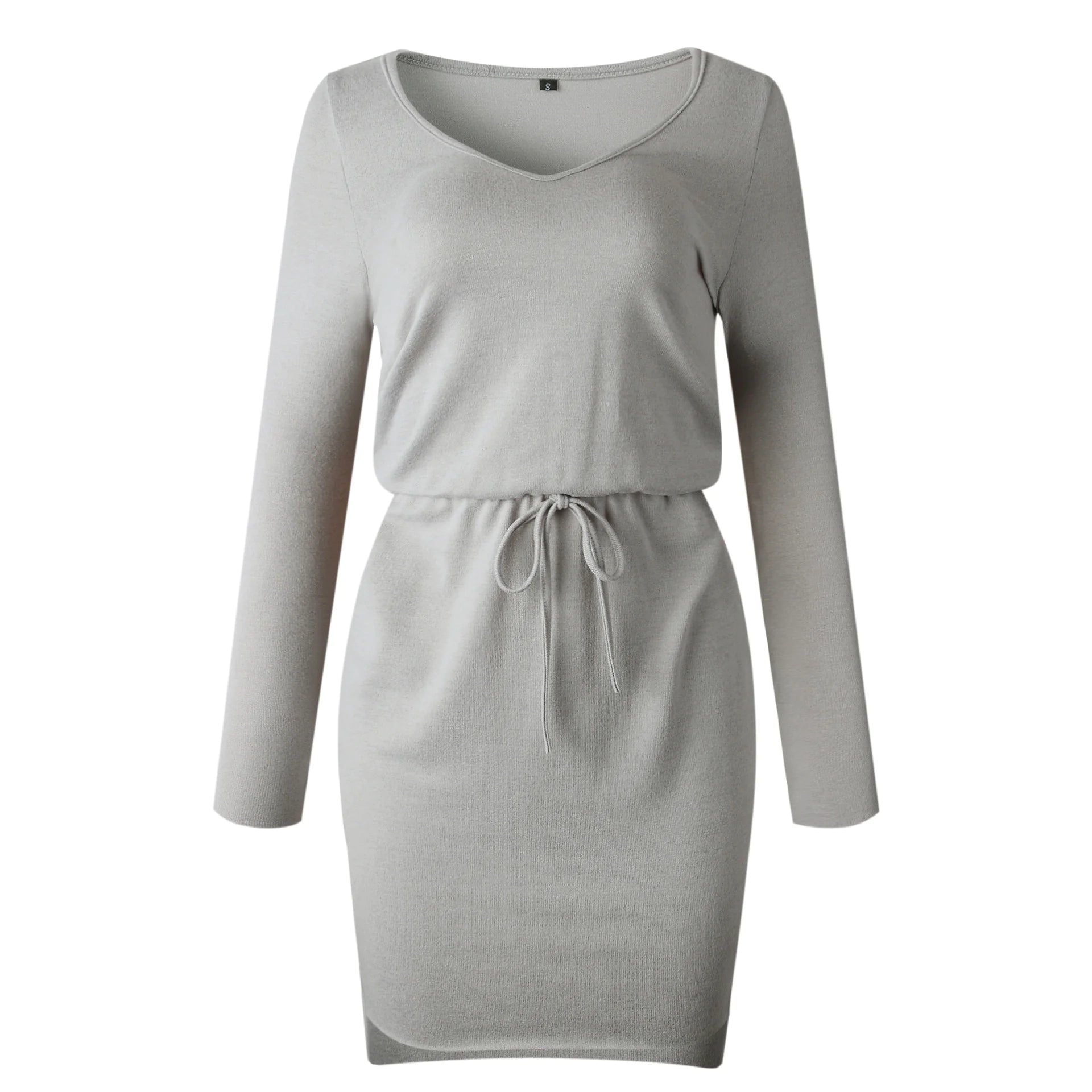 Solid Color V-Neck Dress with Asymmetrical...